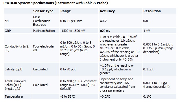 The Pro1030 provides everything you need in a handheld meter that measures pH or ORP (redox) along with conductivity. Rugged, simple and reliable. Measure pH or ORP, salinity, conductivity, specific conductance, TDS, and temperature.